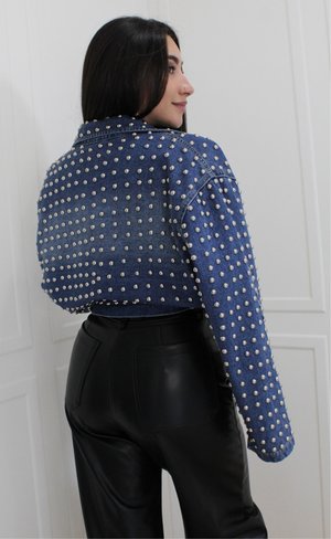 Chaqueta confeccionada en denim de alta calidad, completamente adornada con taches a presión que perduran en el tiempo.