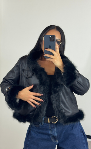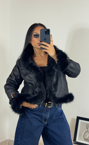Chaqueta en cuerotex con cuello y puños en pelo sintético