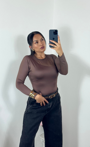 Inicio PRODUCTOS Body asimétrico en licra amorella con transparencias