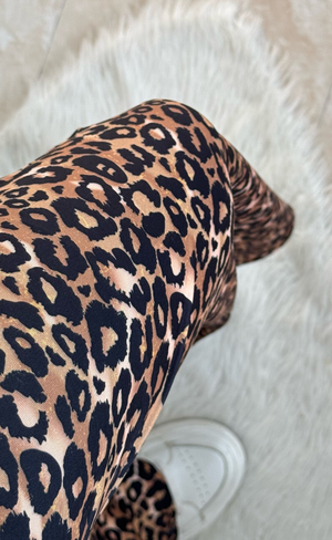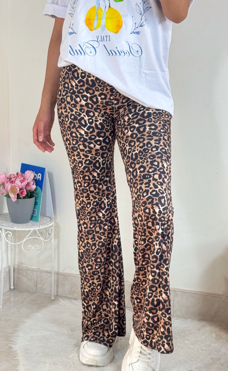 Disponible en color negro y en el atemporal estampado animal print café con negro, ideal para elevar looks básicos y crear outfits con actitud, bota campana ajustado en la parte superior.