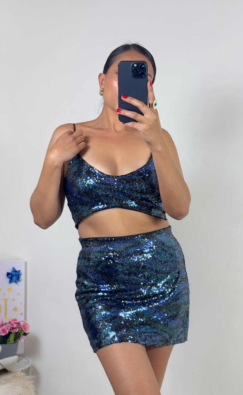Set con lentejuelas de top y falda – brillo de día y de noche