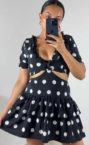 Este vestido confeccionado en popelina con estampado de lunares es un clásico icónico que nunca pasa de moda.