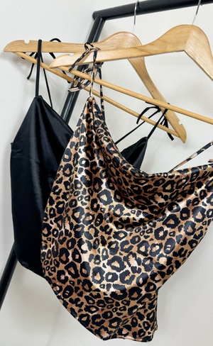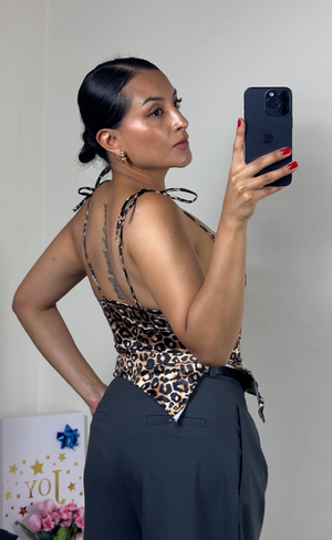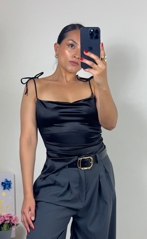 Domina la noche con esta blusa de licra satinada que combina sensualidad y estilo en una sola prenda.