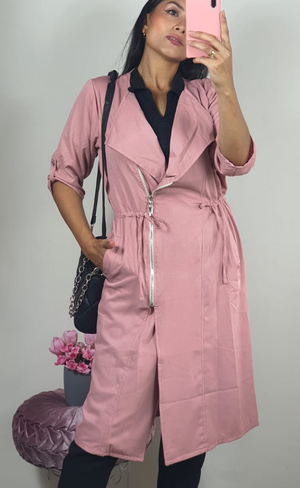 Chaqueta gabán confeccionada en poliéster de trama ligera que proporciona frescura y transpirabilidad en climas templados.