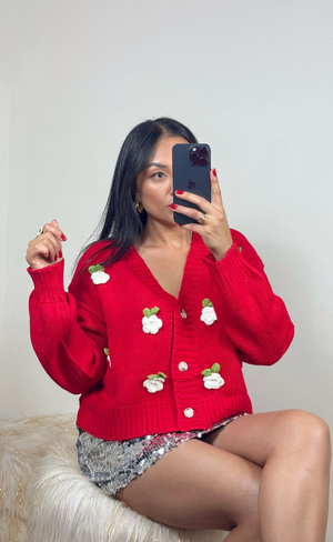 Inicio SALE Saco tejido en hilo con flores aplicadas